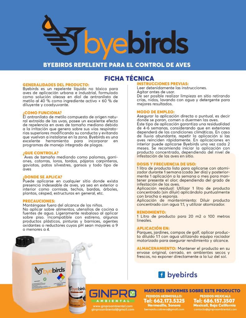 Byebirds utiliza antranilato para repeler aves sin dañarlas.