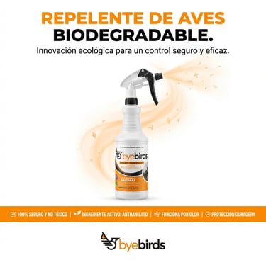 Byebirds trabaja a través del olor porque su ingrediente activo, el antranilato de metilo, genera una sensación olfativa y respiratoria desagradable para las aves sin ser tóxica ni dañina. Las aves son altamente sensibles a ciertos compuestos aromáticos, y al percibir este olor interpretan el área como un entorno incómodo o poco seguro para permanecer.
